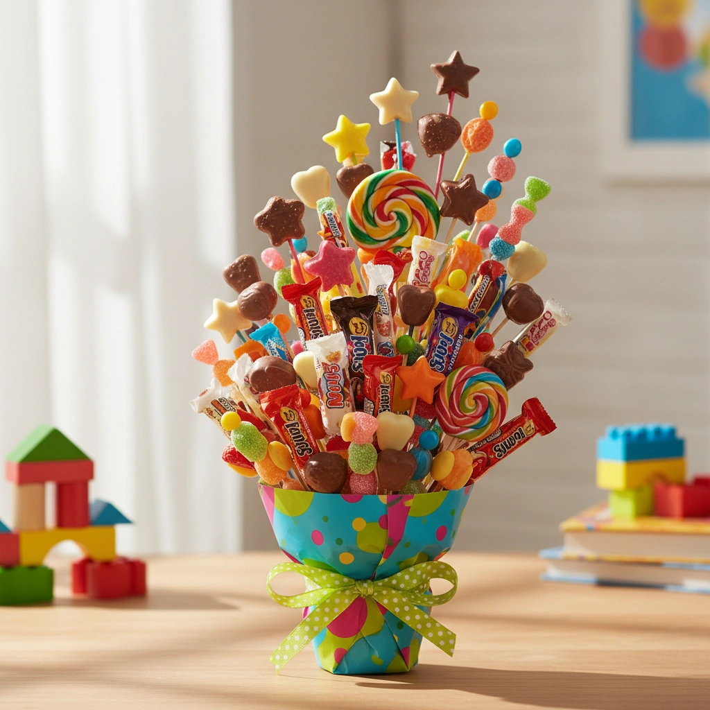 זר שוקולדים אינו רק מוצר צריכה, הוא סוג של משחק. הילד יכול לבחור איזה "פרח" לקטוף קודם, לחלוק עם חברים או בני משפחה, לסדר את הממתקים לפי צבעים או סוגים. האלמנט האינטראקטיבי הזה הופך את המתנה למרתקת יותר מכל צעצוע פלסטיק. זהו פינוק שלא נגמר ברגע אחד, אלא נמשך לאורך זמן, ומאפשר לילד לשלוט בחוויה וליהנות ממנה בקצב שלו. במקום פשוט לאכול ממתק, הילד "חווה" את המתנה, מה שמעצים את תחושת השמחה וההנאה. זוהי מתנה לילד שממשיכה לתת, רגע מתוק אחד בכל פעם.
