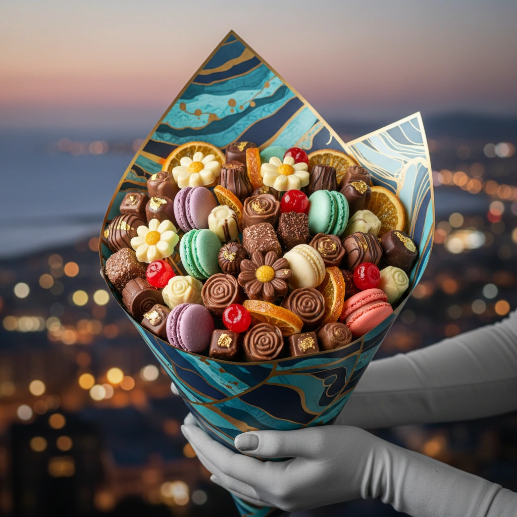 הקונספט של "זר מתוק" הוא פשוט וגאוני בו זמנית. במקום גבעולים ופרחים, הזר מורכב מפרליני שוקולד איכותיים, סוכריות גומי צבעוניות, מרשמלו רך ומגוון ממתקים נוספים, כולם מסודרים בקפידה ובעיצוב אומנותי המדמה זר פרחים קלאסי. התוצאה היא יצירת אומנות אכילה, מתנה שמפעילה את כל החושים – הראייה נהנית מהצבעוניות והעיצוב, והטעם, כמובן, נהנה מהמתיקות המשובחת. זוהי אבולוציה של מתנה, שדרוג של מחווה קלאסית שהופך אותה לאישית, מפנקת ומרגשת הרבה יותר.